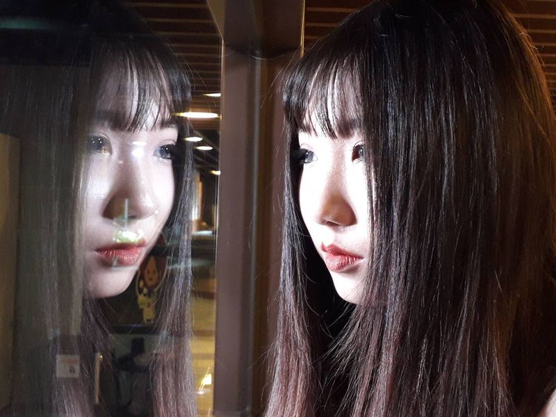 My friend stared out the window and said nothing for a long time. From the reflection, I imagined myself thinking about which one is the real me.