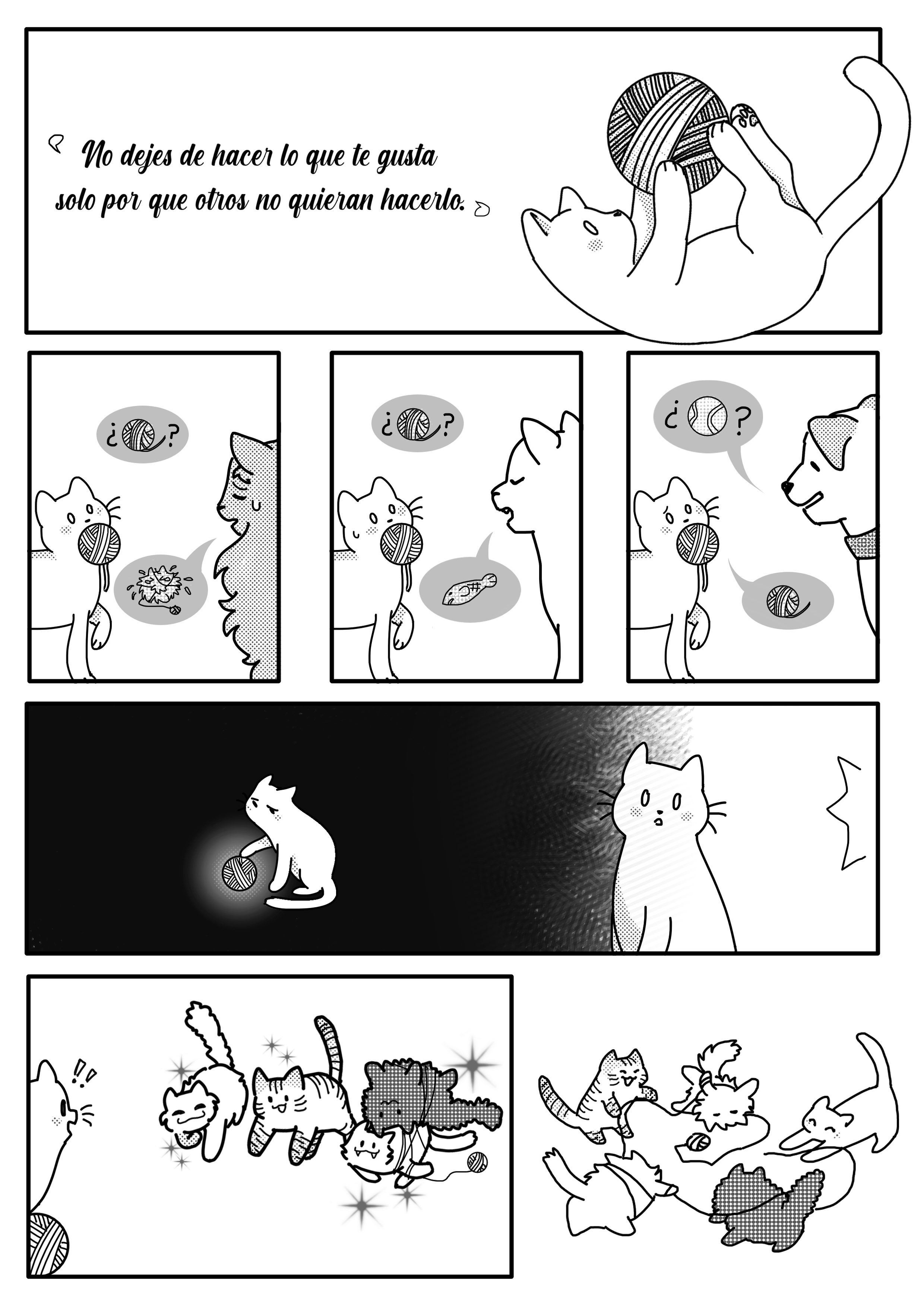 I created this comic to show that it's not necessary to change oneself just to obtain the approval of others. The text in the comic reads: